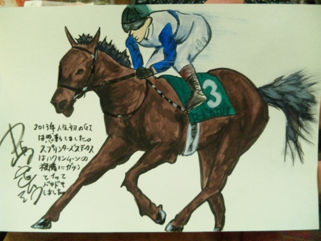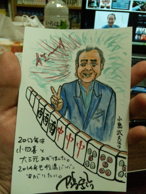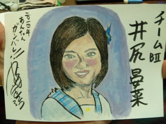 ロードカナロア、NMB48チームB?のイジリーさん、小島武夫先生を年賀状に描いて今日のライブでプレゼントした