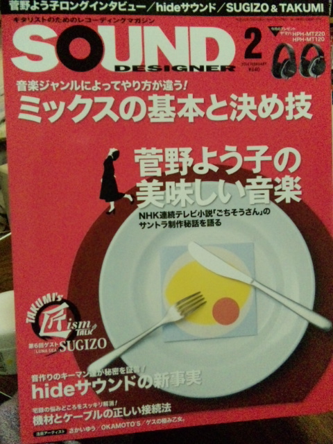 20140122 家 SOUND DESIGNERという雑誌の2月号に僕が載ってた 原さんにちらっと話は聞いてたけどコーナーの素材で僕の曲を使ってるだけかと思いきやしっかりアーティスト紹介までしてあった 今日本屋さんで自分の写真が目に入った途端びっくりしてマッハでページを閉じてしまった 恥ずかしくて一人笑ってしまった 西やんが撮った写真やんか 記念に買っちゃったよ 嬉しいね まだまだ残業の日が続いてる 頭がキレてて家でダラダラしてるよりいいわ
