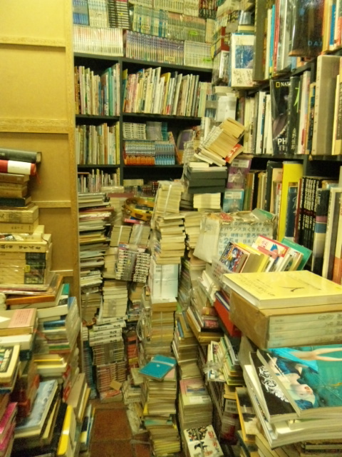 (写真はこんな古本屋が僕は大好きという図、ここをくまなく探して本雪崩を起こさないようにレアなものを見つけるのが堪らない、実際このお店でも高い棚の一番奥に忠男さんの『丘の上でヴィンセント・ヴァン・ゴッホは』を見つけ、店主のおじさんに睨まれながら背伸びしてドキドキ手を伸ばして慎重に慎重に取り出した、でも期待を裏切り普通にプレミア付いて一万円やったからそっと元に戻したわ)